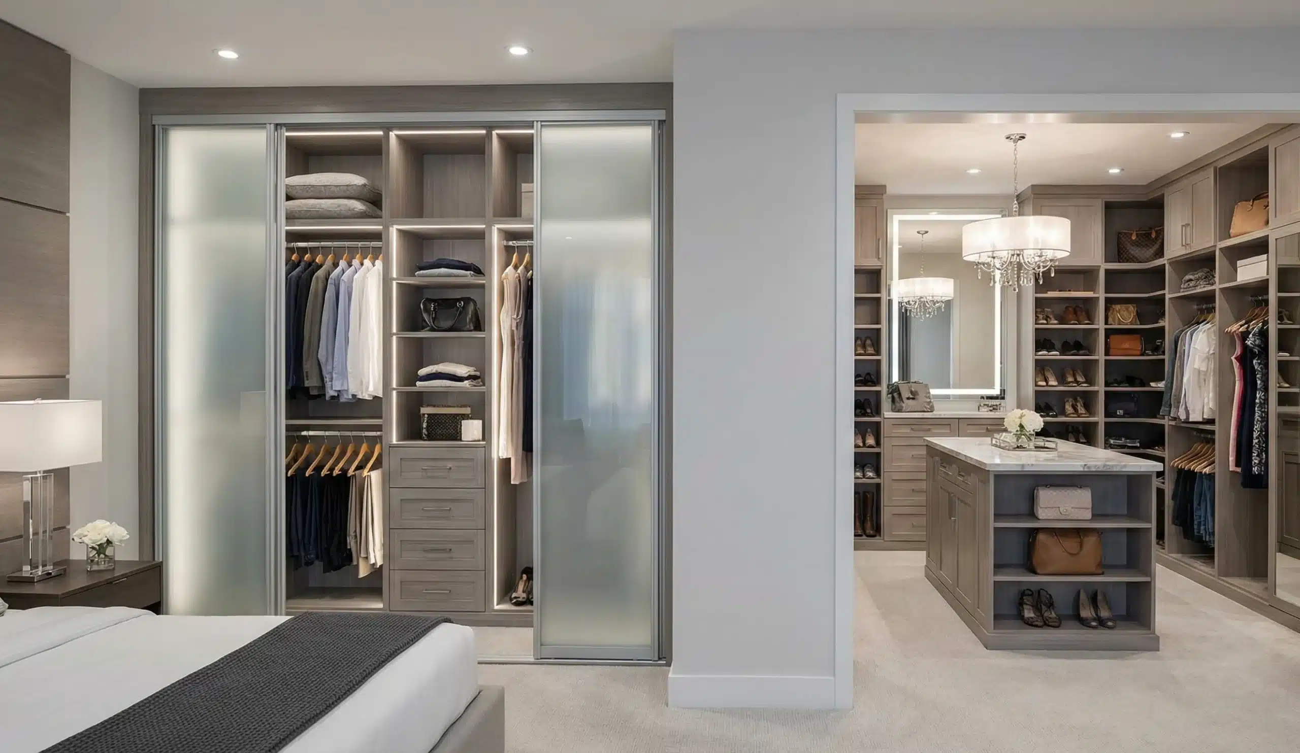 - A walk-in closet helps in removing clutter from both your bedroom and the master bathroom. Since you can get ready in the closet from start to finish, the bedroom is left untouched by the morning chaos.